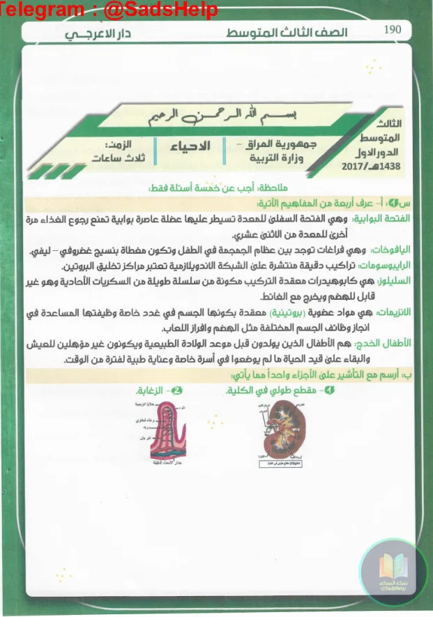 ملزمة وزاريات الاحياء المرشد الصف الثالث المتوسط 2024 PDF