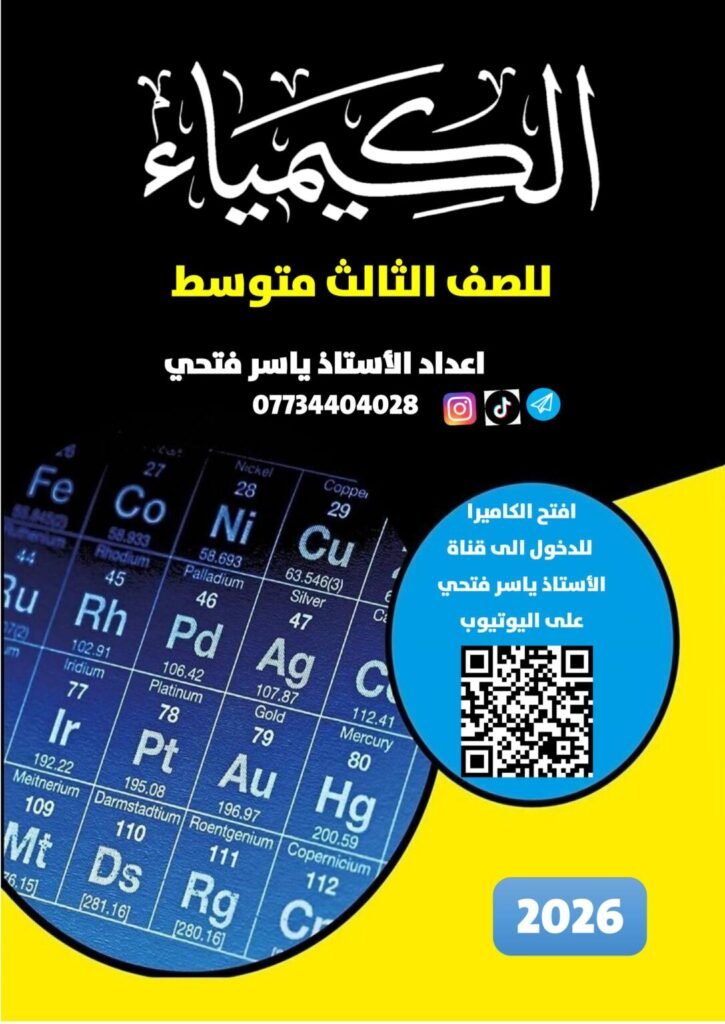 📘 ملزمة كيمياء الاستاذ ياسر فتحي الصف الثالث المتوسط 2026 PDF